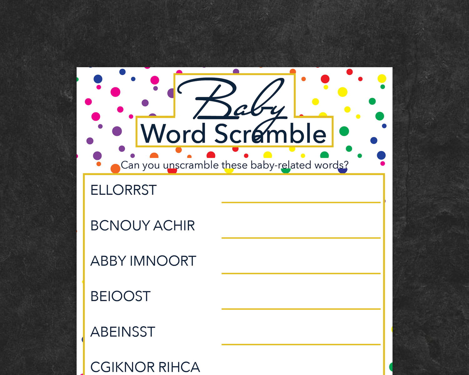 Baby Word Scramble - Rainbow Polka Dot Printable Game Cards
