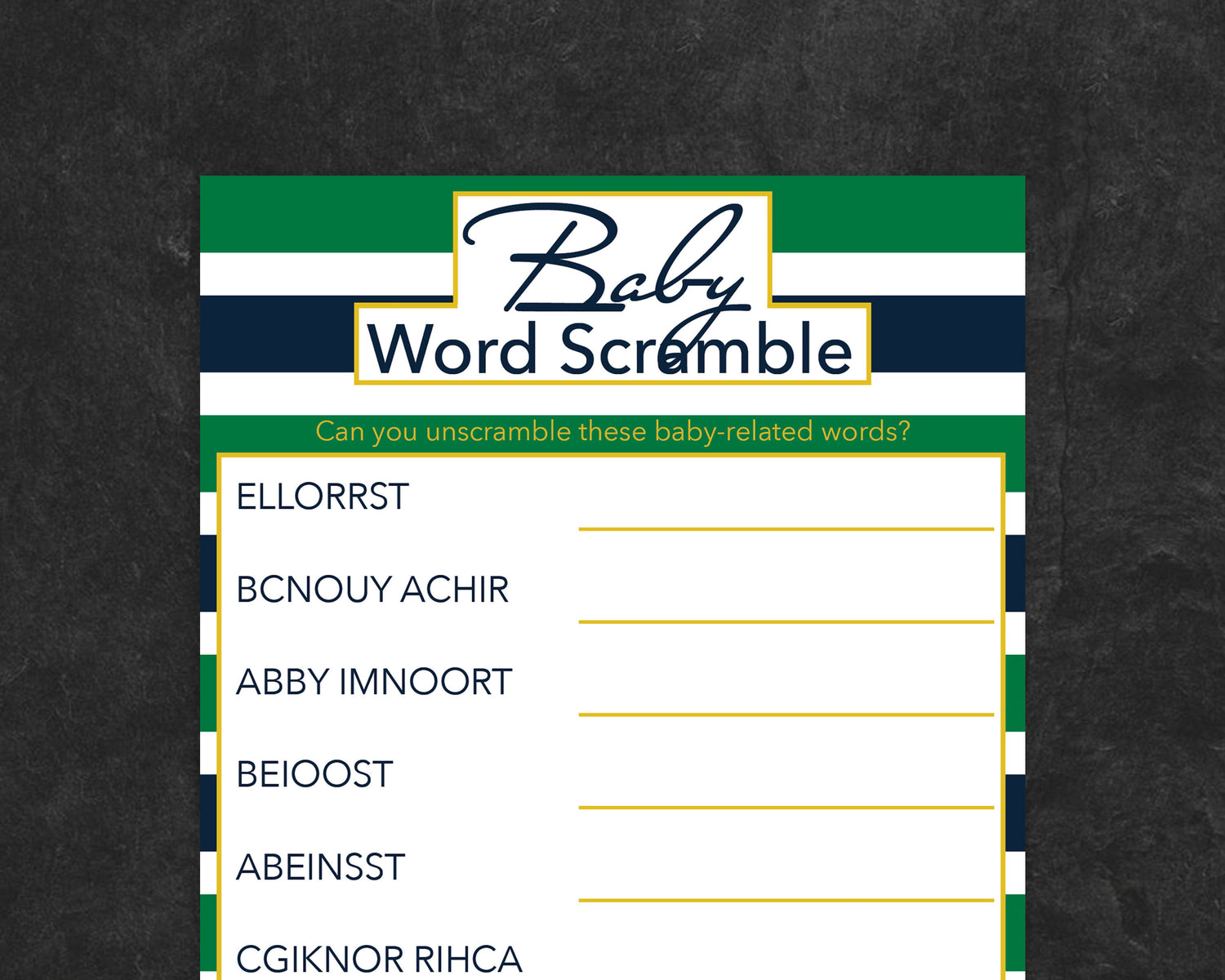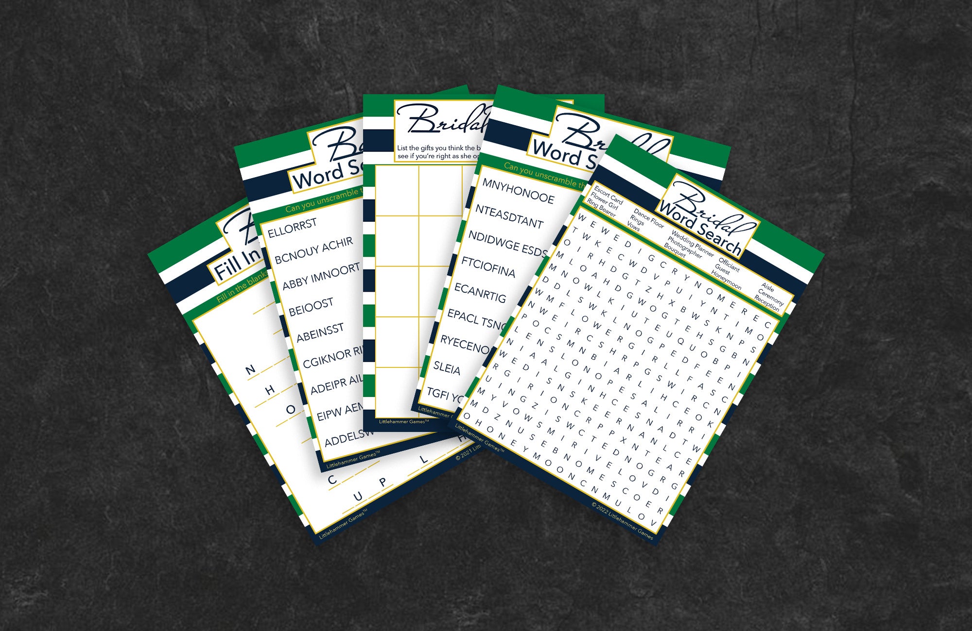 - Print-at-home PDF green and navy blue bachelorette party game cards