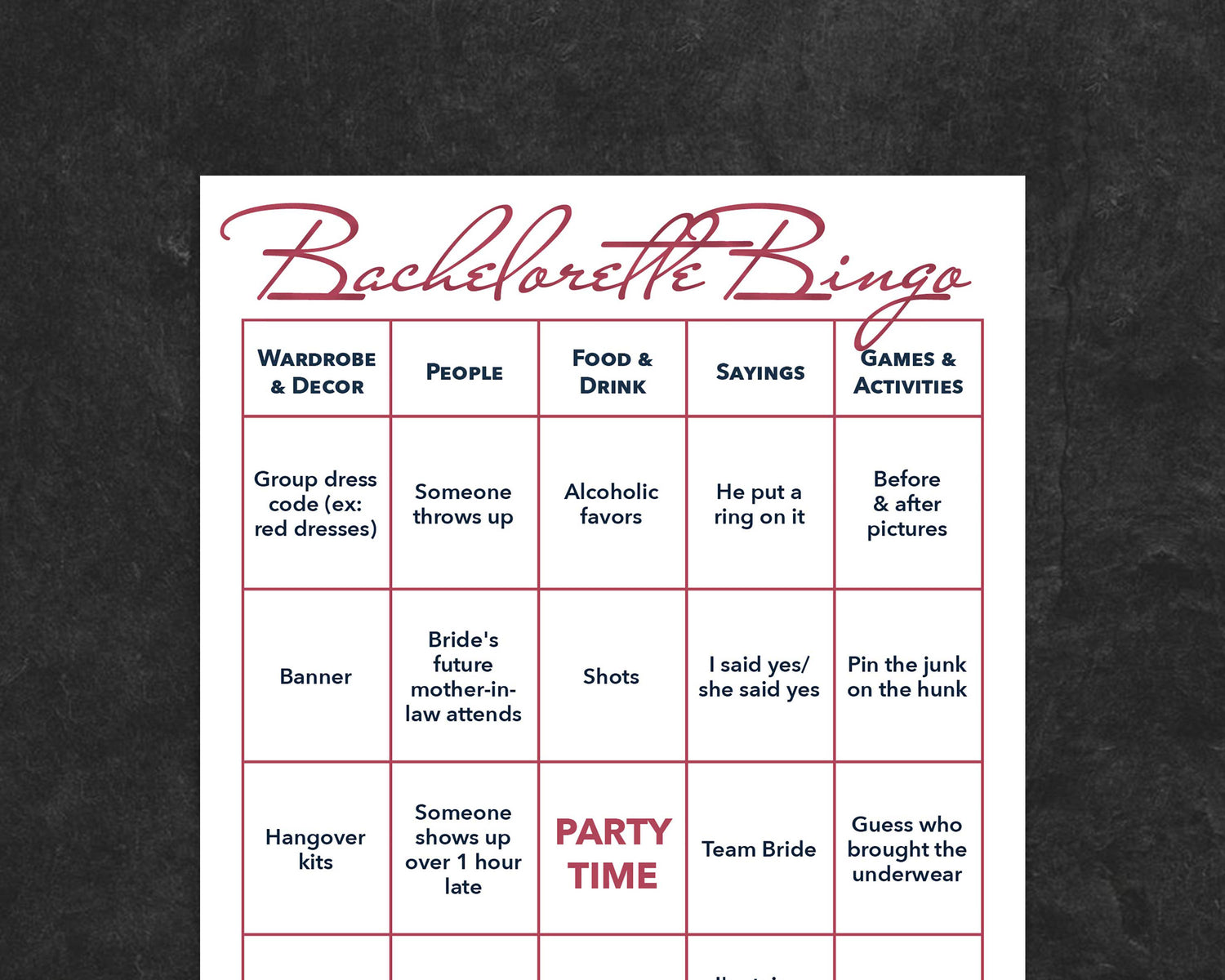 We've got your back! With Littlehammer Games, you can make everyone happy while pulling off an epic bachelorette party. Our printable Bachelorette Bingo game cards are a fun game that everyone wants to play. Bachelorette Bingo is an adult version of "I Spy" where guests are on the lookout for the events that appear in the squares on their game card. Have a blast ticking off the boxes as you celebrate all the cliches and joys of a typical bachelorette party!