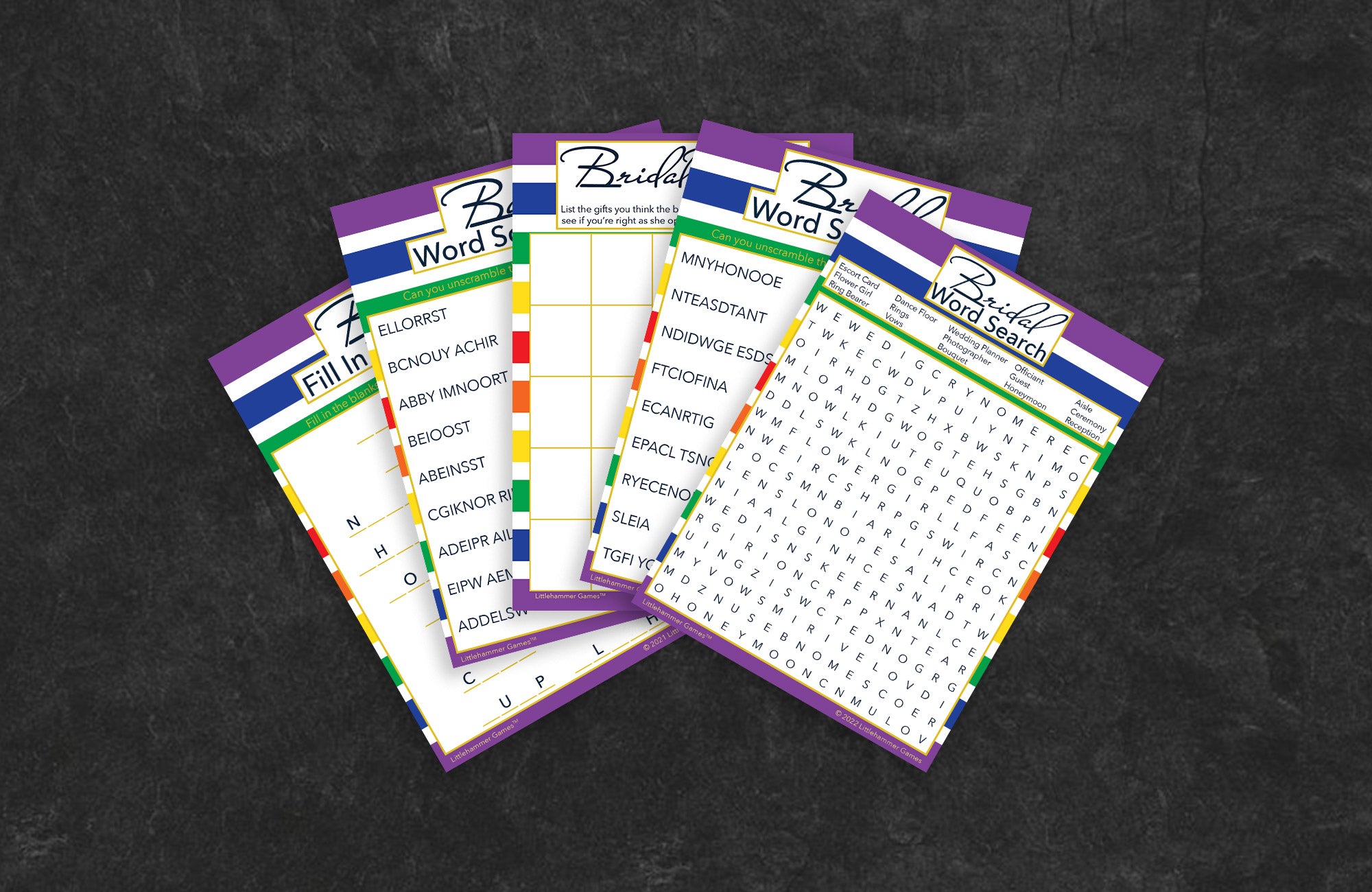 We've got your back! With Littlehammer Games, you can make everyone happy while pulling off an epic shower. Our Bridal Bingo printable game cards are a twist on a traditional bridal shower game that keeps everyone happy. Bridal Bingo is an adult version of "I Spy" where guests are on the lookout for the events that appear in the squares on their game card. Have a blast ticking off the boxes as you celebrate all the cliches and joys of a typical shower!