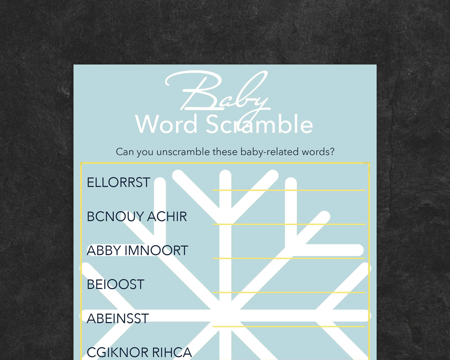 Bridal Word Scramble - Snowflake Printable Game Cards
