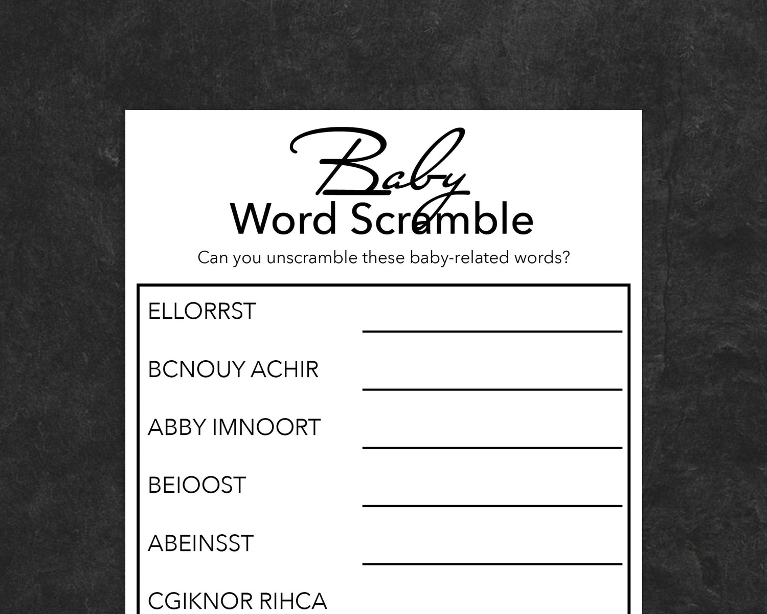 - Print-at-home PDF with black and white minimalist bridal shower game cards